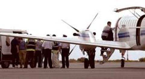 Catorce inmigrantes magrebíes indocumentados que habían llegado a Canarias de forma ilegal abandonaron ayer las islas en un vuelo que salió a las 11.30 de Fuerteventura hacia Melilla, vía Málaga, en un primer destino provisional antes de regresar a su país. Con este primer grupo se inicia la devolución de 70 inmigrantes anunciada por la Delegación del Gobierno. Los inmigrantes, acompañados de cinco policías, fueron cacheados antes de subir al avión. El comisario de la policía nacional Jesús Redondo, dijo que esta semana está previsto realizar otros cinco vuelos similares. Melilla será el destino de la mayoría, en los que se transportará a 45 marroquíes que serán entregados en la frontera del reino alauí. Los restantes son nigerianos y regresarán hoy a su país en vuelo directo. Estos vuelos se suman a 324 que ya se efectuaron desde Canarias entre 1999 y el mes de agosto. Ayer, en la costa gaditana de Tarifa y en aguas de Lanzarote, se detectó una nueva avalancha de pateras en la que fueron interceptados 118 inmigrantes, entre ellos el patrón de una embarcación. Los indocumentados de Lanzarote, 56 subsaharianos y magrebíes, arribaron a bordo de un barco nodriza con bandera de Liberia que transportaba al menos a 40 indocumentados más. El ministro del Interior, Mariano Rajoy, informó de que este año fueron detenidas en Canarias 711 personas y se han producido 116 aprensiones de mafias organizadas.