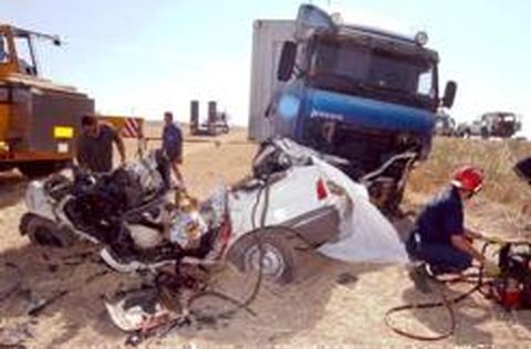 Cinco personas, entre ellas dos niños, fallecieron ayer en un accidente de tráfico en la carretera N-620 (Burgos-Portugal) a la altura de la localidad salmantina de Villares de la Reina. Se trata del siniestro más grave del presente verano. En el suceso, que se produjo sobre las diez y media de la mañana, se vieron involucrados un turismo Ford Escort blanco, matrícula de Madrid, y un camión con remolque, con matrículas de Portugal y Francia, respectivamente. Ambos vehículos quedaron completamente destrozados a consecuencia de la colisión. Según el coordinador regional de tráfico en Castilla y León, Ángel Toriello, «parece ser que el turismo, en una maniobra de salida de la vía hacia la derecha, y en un intento supuestamente de recobrar el control del vehículo, se pasó al lado izquierdo de la calzada, siendo arrollado por el camión, que circulaba correctamente». El conductor del camión, visiblemente afectado, manifestó que nada pudo hacer para evitar el accidente, ya que el vehículo se le echó encima. Las dotaciones de bomberos del Ayuntamiento y la Diputación que acudieron al lugar del suceso necesitaron bombas hidráulicas para extraer los cuerpos, ya que el estado del vehículo impedía su rescate de otra forma. La brutalidad del golpe dificultó las tareas de identificación de los cadáveres. No obstante, con la ayuda de los familiares, Toriello pudo informar de que las fallecidas son cinco mujeres, la posible conductora del turismo, S.M., de 39 años, la acompañante, M.P. de 31 años, y tres menores, una joven de 15 años y otras dos niñas, de 9 y 8 años. Todo parece indicar que estas cinco personas se dirigían a presenciar el campeonato nacional junior de natación que comenzó ayer en la ciudad salmantina. Las familias de las víctimas, todas ellas residentes en San Sebastián de los Reyes (Madrid), fueron localizadas a primeras horas de la tarde, y se trasladaron al tanatorio La Dolorosa, donde el juez ordenó su depósito. El punto en el que tuvo lugar el accidente es especialmente problemático. Prueba de ello son las cuatro cruces blancas en apenas 50 metros, que recuerdan otros tantos accidentes mortales sucedidos allí mismo. La carretera N-620 es una de las más transitadas de la red viaria de España y una de las vías con mayores índices de siniestralidad.