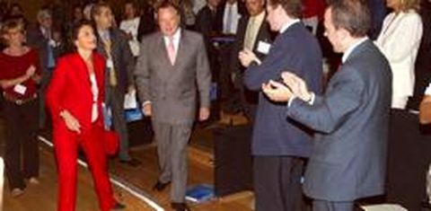 20 sep 2002 . Actualizado a las 07:00 h.-«¿Por aquí no hay muchos políticos, eh?» -«Ninguno, ellos vienen en coches grandes, con los cristales oscuros y muchos escoltas. Yo prefiero el metro y así promociono el transporte público». La estación Campo de las Naciones tenía ayer más público del habitual. Algo importante ocurría cerca: ¿una feria, una exposición, un congreso? Unas banderas con gaviotas azules que volaban sobre unas inmensas letras rojas sacaban pronto de dudas: el PP de Madrid había congregado allí a 2.100 compromisarios y a unos cuantos invitados más para celebrar su XII Congreso Regional. A las diez de la mañana, todo estaba a punto. O casi todo. Unos albaniles enfundados en monos azules se apresuraban a pintar de blanco la puerta de acceso a la prensa. Por la entrada principal, decenas de policías aguardaban la llegada de los protagonistas. Y fueron llegando. El primero, el más madrugador, fue Pío García-Escudero, quien sin perder la sonrisa besó y abrazó a todo el que se le acercaba para darle la enhorabuena. Y eso que hasta las ocho de la tarde no fue reelegido. «Está muy guapa» Le siguió la otra estrella del cónclave, Esperanza Aguirre, que llegó con cara de susto. (No se sabe si por la gente allí reunida o porque, como dijo, Ruiz Gallardón le había dejado el listón muy alto). La todavía presidenta del Senado, con camisa granate y pantalón negro, contestó a las preguntas de los medios de comunicación sin perder de vista la mesa en la que cuatro mujeres vendían participaciones de lotería del número 45.502. «Fíjate como está de guapa. Está mejor que cuando la vimos ayer», susurraban unas mujeres que por la vestimenta y accesorios, faldas ajustadas a la cadera, tacones de aguja y collar de perlas, no parecía que habían llegado en metro. Alberto Ruiz Gallardón tampoco utilizó el transporte público, pero llegó tarde. El presidente autonómico puso su pie derecho en el hall del recinto 10 minutos después de que el presidente de la comisión organizadora declarara abierto el Congreso. Sus asesores no paraban de gesticular advirtiéndole de su retraso, pero él prefirió saludar a los que le tendían la mano. Y fueron unos cuantos. «¿Y el alcalde? ¿Cuándo llega el alcalde?». José María Álvarez del Manzano se hizo esperar. Su viaje a Cabo Cañaveral retrasó su llegada al Palacio de Congresos casi una hora y media. Y eso que es el presidente, porque así se lo pidió José María Aznar como agradecimiento por su labor desarrollada durante la última década en el Ayuntamiento. Pero la espera valió la pena. Al menos para el alcalde, que se llevó los aplausos más sonoros de la jornada, y para los populares que no recibieron con agrado su decisión de no presentarse de nuevo a las elecciones. «Lo que a mí me ha llegado es que ha sido él quien ha dicho que no, que ya son muchos años al frente del Ayuntamiento y que ya estaba un poco cansado», explica un compromisario de Alcorcón. La entrada de Manzano al salón que acoge el cónclave fue triunfal. Los compromisarios que no estaban fuera apurando la colilla de un cigarro o saludando a los colegas de otros pueblos se pusieron en pie y le aplaudieron hasta que ocupó su asiento presidencial. Derrochaba felicidad, casi en la misma cantidad que la ancianita que dirigiéndose a las cámaras decía: «Junto a mi familia, esto es mi vida». También es la de Carlos Iturgáiz, el más aclamado por la tarde. El presidente del PP vasco acudió como invitado al Congreso de una comunidad que, como la suya, sufre el azote del terrorismo, algo de lo que ayer también se habló en los corrillos.