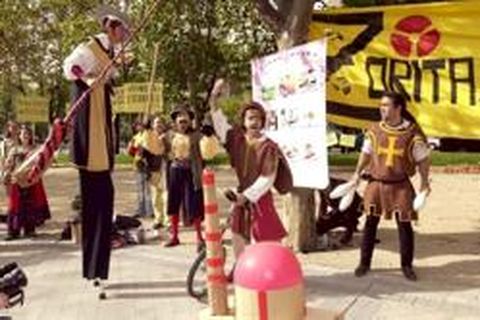 18 oct 2002 . Actualizado a las 07:00 h.Un circo reivindicativo Un pequeño circo ambulante revolucionó ayer un tramo de La Castellana con los espectáculos protagonizados por juglares, malabaristas, apagafuegos, saltimbanquis y demás. Era un espectáculo con mensaje, puesto que los supuestos titiriteros eran en realidad militantes de la ONG Ecologistas en Acción en plena reivindicación del cierre de la central nuclear de Zorita. Durante la escenificación, un Don Quijote alzado en zancos y un Sancho Panza en monociclo «atacaban» una maqueta de la central, mientras un «juglar ciego» relataba la historia de la planta de Zorita (Guadalajara). ¿La saga continúa? Ser hijo de alguien como Bob Dylan es sin duda un arma de doble filo: el apellido, por supuesto, ayuda en los comienzos; después se convierte en un lastre y en una eterna comparación imposible. Pero Jakob Dylan, por lo que se ve, lo lleva con calma. Le va bien con su banda, The Wallflowers, que lleva diez años de carrera y con la que publica ahora su cuarto disco, Red Letter Days. Ayer habló de él en Madrid como «un álbum cargado de libertad y con claros mensajes positivos y de esperanza». Es un disco muy rockero, en el que ha colaborado Mike McReady, guitarrista de Pearl Jam, y con el que el grupo comenzará una gira el 20 de noviembre en Estados Unidos que le traerá a España a lo largo del año próximo. El hijo del maestro de Minnesotta guarda silencio cuando le preguntan si su padre es fan de The Wallflowers: «No sería muy ético, ya que un sí de él supondría una enorme campaña publicitaria». Repaso a 30 años Otro que viene con disco nuevo es el veterano cantautor catalán Jaume Sisa. Treinta años después de iniciarse en la profesión, Sisa ha grabado con su nuevo grupo, La Verbena Galáctica, el álbum Bola Voladora, con el que revisa su trayectoria y traslada sus canciones a nuevos territorios musicales, como el rock, el reggae o incluso la electrónica. Jaume Sisa presentará el disco en público el lunes en el Círculo de Bellas Artes. Contactar con el teatro El Teatro Pradillo, una de las principales salas alternativas de la ciudad, comienza hoy la programación infantil de las Semanas Internacionales de Teatro para Niños y Niñas, que continuará hasta el 1 de diciembre. La obra que abre fuego es Manomanía, de la compañía Teatro del Buratto, recomendada para niños a partir de tres años de edad.