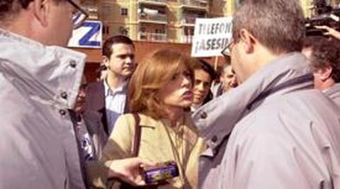 08 mar 2003 . Actualizado a las 06:00 h.? La mujer del presidente del Gobierno está probando el sabor amargo de la política activa. Ayer, un grupo de personas la increpó a la entrada del Centro Cívico Julián Besteiro de Leganés, donde se celebraba un acto del partido con motivo del Día de la Mujer Trabajadora. La número tres del PP a la Alcaldía de Madrid tuvo que hacer frente a un grupo de manifestantes pacifistas que protestaban contra la guerra en Irak y a otro de trabajadores de Sintel que se quejaba de que el Gobierno incumplió las promesas que les hizo.Pese a haber vivido en La Moncloa durante los últimos ocho años, la mujer de Aznar no descartó el cuerpo a cuerpo y respondió a los manifestantes que ella es «pacifista», a la vez que afirmó que Sadam «está acabando con la vida de muchas personas».La candidata del PP a las concejalías de Servicios Sociales y Empleo del Ayuntamiento olvidó las protestas ya en el acto electoral de su partido y se comprometió, coincidiendo con la celebración del Día Internacional de la Mujer Trabajadora, a trabajar «de forma especial por el empleo para las mujeres de la Comunidad de Madrid y principalmente por el de las mujeres mayores de 45 años que quieran incorporarse al mercado laboral».Justo un día después de que el candidato a la Alcaldía de la capital y actual presidente de la Comunidad de Madrid, Alberto Ruiz-Gallardón, anunciara que ella estará al frente de una nueva concejalía que aunará las competencias municipales de Empleo y Servicios Sociales, Ana Botella comenzó a realizar propuestas y, según aseguró, el empleo femenino será uno de los principales objetivos de su política. «Hay que darles una oportunidad para trabajar fuera de sus casas, después de haber trabajado siempre sin reconocimiento», dijo.Además, subrayó que uno de los retos futuros será implicar a los hombres en los trabajos domésticos y en la educación de los hijos. En esta tarea, que aseguró que logrará una sociedad más equilibrada y justa, los ayuntamientos jugarán un papel decisivo para que lleven a cabo una función de concienciación de igualdad.En clave nacional y en referencia a la paga de 100 euros que recibirán mensualmente las madres trabajadoras con hijos, Botella señaló que «es mucho, porque es la diferencia entre esto y la nada; es cien veces más. Antes había cero».