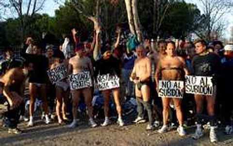 Varias decenas de deportistas protagonizaron ayer un desnudo colectivo en la explanada del lago de la Casa de Campo, para exigir al Ayuntamiento que instale en ese lugar vestuarios o servicios públicos donde puedan cambiarse y ducharse cuando acuden allí a entrenar. Según Juan García Vicente, miembro del grupo promotor de esta iniciativa, con este desnudo pretenden conseguir un lugar «digno» donde cambiarse de ropa y lavarse, para no tener que vestirse en plena calle, en ocasiones a temperaturas bajo cero, y marcharse a casa sin duchar.