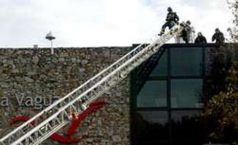 Un incendio en la azotea de unas oficinas ubicadas en el centro comercial de La Vaguada provocó en la tarde de ayer una densa columna de humo visible desde diversos puntos de la capital, aunque el fuego no causó daños personales. El suceso tuvo lugar sobre 16.30 horas en la azotea de las oficinas de Alcampo, cuando dos operarios de mantenimiento realizaban trabajos ordinarios en la torre de refrigeración. El uso de unos sopletes pudo provocar el incendio, que intentaron sofocar los operarios, aunque sin éxito, por lo que avisaron a los bomberos, en la imagen.