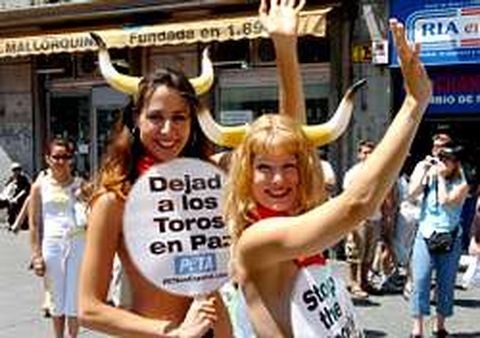 02 jul 2004 . Actualizado a las 07:00 h.?unque pudiera parecer que deseaban tomar el sol en plena ciudad, las dos jóvenes que ayer se pasearon en paños menores por la Puerta del Sol pretendían defender los derechos de los animales. Tal como se leía en la pancarta con la que tapaban sus intimidades, «Dejad a los toros en paz», estas dos «cornudas» activistas del grupo Peta (Personas por la Ética en el Trato con los Animales) protestaban contra la fiesta nacional y los Sanfermines. Esta organización, que nació en Estados Unidos en 1980, es algo así como el Greenpeace del reino animal. «Los animales no nos pertenecen, ni son inferiores ni están en este mundo para servirnos. Son seres vivos, como nosotros, que sufren y padecen cuando los torturamos, los explotamos o los matamos vilmente, por puro divertimento», explica Ingrid Newkirk, fundadora de la organización junto a Alex Pacheco . «¡Antes desnudas que usar pieles!», «Detener el baño de sangre que provoca la moda», «Algún día la carne desaparecerá de las vitrinas». Peta siempre ha apostado por la polémica y los rostros conocidos - Naomi Campbell , Paul McCartney o Pamela Anderson - como ingredientes esenciales para captar la atención sobre sus campañas. En este caso, además del acto de ayer, organizarán en Pamplona un encierro de más de 300 simpatizantes de esta organización, en el que no habrán toros pero sí corredores desnudos que saldrán a la calle para pedir fiestas en las que los animales no tengan que sufrir. ?l teatro también quiere entender de moda o, por lo menos, vestirse con los últimos modelos de los diseñadores más exclusivos. La firma Modesto & Lomba se ha embarcado en la producción escénica con el montaje Mercado Inmobiliario , de Nicanor Cardeñosa , que se estrenará el próximo día 6, en el Teatro Infanta Isabel. Cardeñosa, que además es el director de la función, explicó ayer que la obra es básicamente un drama en el que aparecen temas muy actuales como la soledad, la muerte, la maternidad, el adulterio o la homosexualidad. Dos hermanas, interpretadas por las actrices Carmen Navarro y Nerea Moreno , de ideología completamente opuestas, acaban descubriéndose y encontrándose a pesar de sus diferencias. ?olanda está más cerca de los madrileños gracias al Círculo de Bellas Artes. Ocho películas inéditas en España, que, en su conjunto, ofrecen una panorámica del cine de los Países Bajos de los últimos dos años, conforman la Semana de Cine Holandés, hasta el próximo 9 de julio. El ciclo se abre con Zus and Zo , de la directora Paula Van der Oest , quien presentó ayer en rueda de prensa esta iniciativa que, según señaló, «acoge desde películas de autor a otras más comerciales tocando muchos géneros, constituyendo una muestra representativa de nuestro cine». Este largometraje, candidato al Oscar 2003, está inspirado libremente en Las tres hermanas de Chejov y comienza cuando un joven toma la decisión de casarse con su novia, lo que desata el pánico entre las hermanas de él, que saben que es homosexual. La ópera Tosca , de Giacomo Puccini, cuyo montaje se estrenó el pasado mes de enero en el Teatro Real, bajo la dirección escénica de Nuria Espert y la dirección musical de Marco Armiliato , volverá a este coliseo, del 10 al 16 de julio, a precios populares, que oscilarán entre 6,50 y 60 euros. Este montaje contará con las voces de Isabelle Kabatu y Carol Vaness como Floria Tosca ; Franco Farina y Nicola Rossi como Cavaradossi.