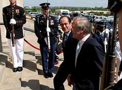 El secretario norteamericano invita a «pasar página» sobre la retirada española de Irak El titular de Defensa mostró a su interlocutor los contratos firmados con Venezuela