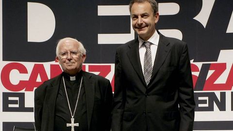 Zapatero rompió su silencio para discutir con un hombre que combatió con dureza las principales leyes socialistas, desde el matrimonio homosexual hasta el divorcio exprés o la ampliación de la ley del aborto. El público, entregado al cardenal, pedía saña y virulencia. Cañizares no solo hizo caso omiso, sino que tuvo que salir en defensa de Zapatero. «Hemos venido a hablar de humanismo, y el humanismo exige respeto a las personas», zanjó el purpurado.
