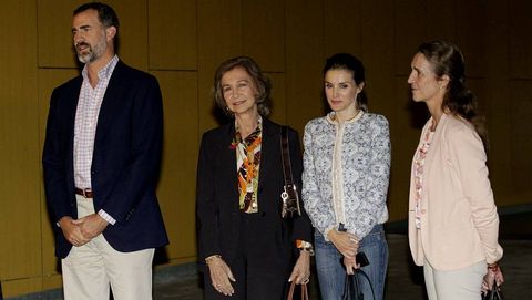 La reina, los príncipes de Asturias y la infanta Elena han abandonado pasada la medianoche el Hospital Quirón mostrándose «muy contentos»