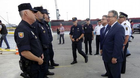 Zoido desayunó por la mañana con los agentes en los barcos atracados en Barcelona. A ellos les adelantó que el refuerzo de policía y Guardia Civil se quedará en Cataluña «todo el tiempo que sea necesario para seguir garantizando el cumplimiento de la ley». E insistió en que el Gobierno «no tolerará que se fomente el odio contra la Policía Nacional y la Guardia Civil, cuando están en Cataluña para defender todo aquello con lo que sus agresores quieren acabar: la libertad».