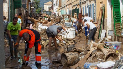 Mientras tanto, en la calle Mayor, la más afectada por la riada, medio millar de efectivos policiales y militares fueron destinados a ayudar a las labores de desescombro. Poco a poco, el nivel de barro del municipio va descendiendo, pero todavía ayer era posible pisar una acera y comprobar cómo hasta diez centímetros de las botas que los vecinos y los agentes se afanaron en comprar, quedaban sepultadas en el lodo. Para entrar a la localidad ya es exigible este calzado. «Hasta que no nos lo quitemos en unos días, no tendremos vida normal», señalaba Roser. Una vez salvado el mayor número de personas posibles la mayor preocupación eran las casas para resguardar todas esas pertenencias personales y familiares a las que casi nunca se les da valor hasta que se pierden. El cuadro que pintó el pequeño de la casa en el colegio; el traje de novia que nunca más volvió a ver la luz tras la boda; los libros que ya nadie quiere leer... Todo en Sant Llorenç cobraba ayer un valor infinito.
