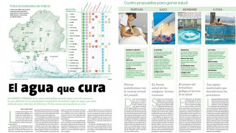 La riqueza de las aguas mineromedicinales gallegas es el origen de la aplia oferta termal de la comunidad, con 21 centros que ofrecen tratamientos para diferentes dolencias, siempre bajo supervisión médica.