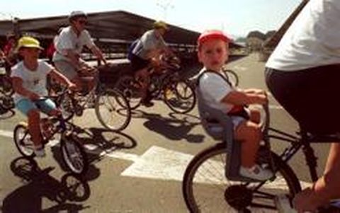 La jornada deportiva organizada por La Voz y Onda Cero se celebró en un ambiente festivo y bajo el espléndido sol de la mañana Alejandro, de dos años, y Miguel, de 75, pusieron ayer los extremos en el Día de la Bicicleta, una carrera no competitiva que cruzó la ciudad de punta a punta. En medio del joven Alejandro y del veterano Miguel, más de un millar de ciclistas de toda edad y condición. Partieron de A Gándara y se acercaron paulatinamente al centro, hasta detenerse en el Cantón, donde se sortearon varios lotes de regalos cedidos por Alcampo, patrocinador de la iniciativa que promovían Onda Cero y La Voz de Galicia, con ayuda del Patronato de Deportes del Ayuntamiento y otras casas comerciales. Protección Civil y el Club Cilista también echaron una mano.