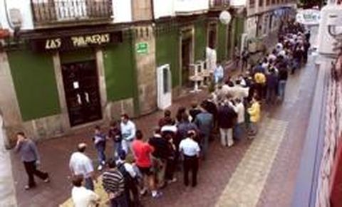 09 jun 2001 . Actualizado a las 07:00 h.Lo que no consiguieron ni el Atlético, ni el Betis ni el Sevilla lo puede lograr el Levante. Ninguno de los tres ex-campeones de Liga llenó A Malata. Pero el tirón del último partido en casa, en el que el Racing intenta asegurar la permanencia, puede abarrotar el recinto municipal por primera vez en la temporada. Cinco mil quinientas plazas son fijas para los socios. Además, cada uno de los 2.500 accionistas disponía de un par de invitaciones para el encuentro. Casi todos los pases fueron retirados en las oficinas del club. A estos 10.500 espectadores se le unen las 1.000 localidades enviadas a distintos colegios de la comarca y las 200 repartidas por La Voz de Galicia entre sus lectores. Agotadas todas estas entradas, las previsiones del club apuntan a que el estadio rozará el lleno. Las peñas adelantaron ayer parte del trabajo de preparación del recibimiento que realizarán hoy al equipo. Cuando el Racing salte al campo caerán de la cubierta del estadio 300 kilos de confeti, formando una vistosa cortina de papelillos. Al mismo tiempo, los recogepelotas soltarán cerca de dos mil globos al aire. Y en distintos puntos del estadio se desplegarán tiras de plástico verdes y blancas. La expectación ante el partido ha aumentado en las últimas horas. La Voz de Galicia repartió ayer un millar de camisetas verdes, donadas por Muebles Centro, el Hotel Suizo y Deportes Fórum, entre las mil primeras personas que entregaron un cupón del diario en la delegación del periódico. Desde antes de que abriera la delegación, ya había colas en la calle Manuel de Cal. Y entre las diez y las once fueron repartidas todas las camisetas entre los lectores del diario, cuya demanda incluso superó la amplia oferta.