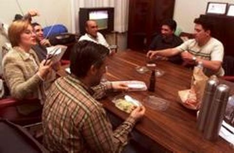 Ocho perceberos viven hoy su cuarto día de encierro en la sala de comisiones del Concello ferrolano Son siete hombres y una mujer que no trabajan desde hace tres meses. Aparentemente, nada nuevo, pero es que desde el lunes desayunan, comen y duermen en la sala de comisiones del Concello, a dos pasos del despacho del alcalde. Es su particular modo de exigir un puesto de percebero en la nómina de la cofradía de Bernardo Bastida. Los «invitados» de Xaime Bello se entretienen con un parchís, se alimentan con la comida que les compra la CIG y duermen, en sacos de dormir, sobre el suelo de moqueta marrón.