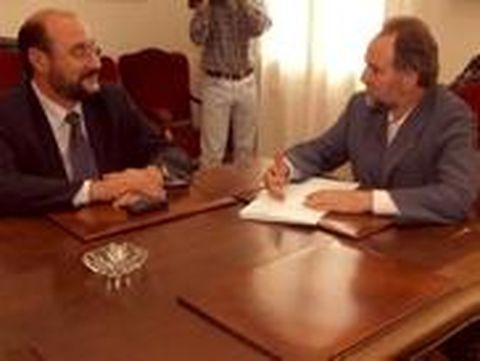 Santiago Canet, director de Unicén, anunció ayer al alcalde que su nuevo centro comercial destinará el 1% de sus beneficios a la organización humanitaria Dignidad