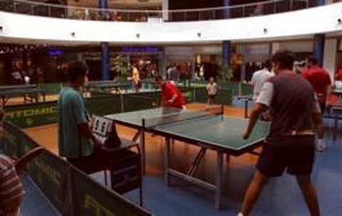 Los pasillos centrales del centro comercial Odeón se conviertieron ayer en una gran cancha en la que cualquier aficionado o curioso podía practicar el tenis de mesa. El club que agrupa a los amantes de este deporte en el municipio de Narón era el organizador de la jornada, junto con la dirección del recinto. Varios monitores instruían sobre la práctica del ping-pong al público. Además, se disputó una competición entre los participantes más avezados.