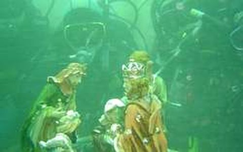 Quince miembros del Club de Buceo de Cedeira instalaron ayer un Belén a diez metros de profundidad en la ría cedeiresa. Los buceadores se adentraron hasta cerca del faro próximo al espigón de la villa y allí procedieron a instalar el Belén, realizado en plástico y que ahora el mar se encargará de ir deshaciendo, como explicaba el presidente de la entidad, José Luis López Vigo. La operación se ejecutó en apenas una hora. López explicaba que ese mismo trabajo ya lo había realizado con anterioridad en Viveiro y Cádiz. El gobierno cedeirés, que apoyaba esta curiosa iniciativa, ya ha propuesto que el próximo año se lleve a cabo, con su respaldo, en un lugar más próximo a la villa y con figuras de piedra para que lo contemplen todos los ciudadanos.