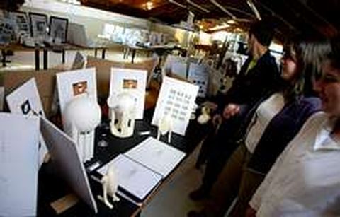 Crónica | Exposición de trabajos en el campus Más de medio centenar de ideas presentaron los alumnos de la escuela ferrolana a Isaac Díaz Pardo, coordinador de diseño de la prestigiosa firma gallega