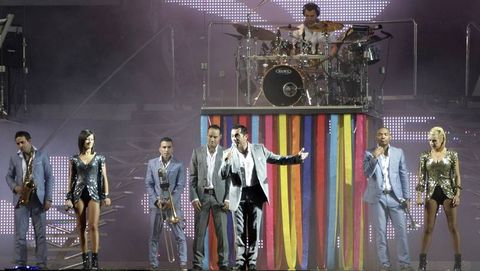 La actuación de la mítica orquesta París de Noia llenó de música el centro de Ferrol la pasada noche. Los asistentes a este concierto, con motivo de las fiestas de verano de la ciudad, pudieron disfrutar de la interpretación de los temas más representativos de su repertorio, así como de versiones de canciones de éxito en un espectáculo celebrado en la plaza de Galicia y que estuvo marcado por la lluvia.