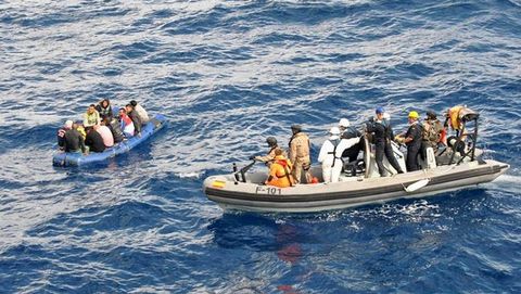 La fragata, que en la actualidad manda una flota de la OTAN en esas aguas, dio orden al helicóptero que lleva a bordo de que obtuviese de información de las embarcaciones. Una vez en la zona, la aeronave confirmó la existencia de las lanchas neumáticas en mal estado y con personas a bordo.