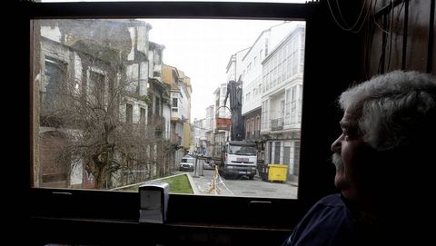 Prácticamente enfrente, Luis Estraviz tiene vistas directas en su bar, el Náutico, a la ruina de la casa en la que los operarios se afanan estos días en retirar los elementos con riesgo de caída. «Pouco hai que dicir, está á vista de todos», lamenta. Recuerda como «en tempos se traballaba ben» en el barrio. «Hoxe cae unha casa, mañá outra, e veña corte de calles... Así non se pode. Aquí ninguén vén montar xa ningún negocio, tal e como está todo», agrega.