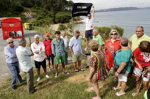 La comunidad general, en la que están integrados varios bloques de apartamentos de la zona, han encabezado varias protestas para denunciar «el abandono general de la zona». «En la playa no hay socorrismo, las papeleras se han repuesto esta semana, no se ha hecho una limpieza del arenal desde Semana Santa, está todo lleno de restos, palos...», relata Carlos Casares, representante de la comunidad de vecinos. Por ello, diariamente colocan a primera hora y guardan por la noche el símbolo de su luto. El mal estado de la zona costera también afecta a los usuarios del cámping. En total, estiman que en verano la zona puede llegar a tener alrededor de unos mil vecinos y visitantes.