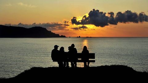 «Un abuelo del lugar nos ha dicho que no dejemos de ir al mejor banco del mundo... y aquí no esperamos un banco comercial», relata una familia de Alicante, bien encaminados. El verano pasado descubrieron la Costa da Morte y este año han decidido explorar la comarca del Ortegal. «Deliciosa, como el día». Con el mar azul cobalto, el sol esquivo apuntando a los bajos de Espasante y los cúmulos amenazantes sobre la punta de Estaca de Bares.