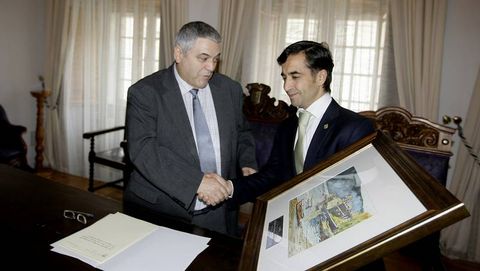19 oct 2014 . Actualizado a las 05:00 h.Con motivo de la celebración de la festividad de As San Lucas, los Concellos de Mondoñedo y Ferrol volvieron a renovar su hermandad en un acto institucional que tuvo lugar ayer en la Casa Consistorial mindoniense. El alcalde ferrolano, José Manuel Rey, hizo entrega de un cuadro del castillo de San Felipe, obra del artista Pipo Romero. Rey Varela destacó la tradición de la feria de As San Lucas, que se remonta al siglo XI y que «forma parte da vosa identidade como pobo». «Permítenos poñer en valor a irmandade entre os dous concellos, da que nos sentimos moi orgullosos ao tempo que compartimos con esta celebración festas e tradicións», señaló, y resaltó las relaciones históricas, culturales y religiosas que unen ambos municipios. El regidor ferrolano también invitó a la corporación de Mondoñedo a que se desplacen a Ferrol con motivo de la celebración de las Pepitas para volver a celebrar la hermandad.