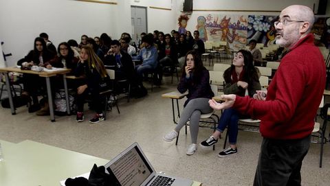 Otro investigador, Jorge Mira, catedrático de electromagnetismo da Universidade de Santiago, impartió ayer una conferencia en el IES de Fene, enmarcada en los actos del programa que impulsa el Concello, Fene coa ciencia en galego. Representaciones teatrales, un concurso de dibujo o una exposición serán algunos de los actos en los que participarán los estudiantes de todos los centros educativos del municipio.