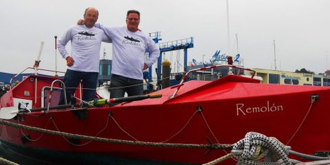El coruñés Jorge Pena y Jesús de la Torre, madrileño que veranea en Ares, se preparan para cruzar el Atlántico a bordo de "Remolón"