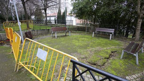 Al poco tiempo el Concello ejecutó una obra de urgencia para retirar los escombros y apuntalar el muro, pero, desde entonces, el parque sigue igual o «incluso peor», según denuncian los vecinos, porque el hundimiento ha ido a más en un tramo de escaleras que no ha sido vallado, mientras que algunas de las protecciones que impedían el paso a otras zonas peligrosas se han caído, permitiendo el acceso a ellas.