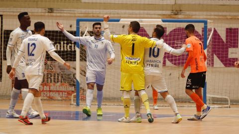 Incidencias: Partido de la décima jornada de la Liga Nacional de Fútbol Sala disputado en el pabellón de A Malata ante tres mil aficionados. Ambas escuadras salieron al parqué con la camiseta de la campaña contra la violencia de género