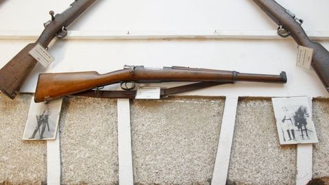 La sala histórica del cuartel de Dolores, sede del Tercio del Norte, atesora todo un arsenal de piezas vetustas, cada una de ellas con un relato singular. Son un total de 175 fondos, entre los que se incluyen armas, maquetas, material de campaña y de comunicaciones. Las antiguas cocinas del acuartelamiento -con casi 250 años de antigüedad- son ahora la galería en la que cada artículo tiene acomodo. Las otrora chimeneas, ahora módulos, cobijan piezas armamentísticas que van desde el último cuarto del siglo XIX, como el fusil italiano Carcano M91, producido en masa durante décadas, y similar al que supuestamente usó Lee Harvey Oswald para asesinar al presidente John F. Kennedy en Dallas el 22 de noviembre de 1963. Pero el viaje temporal en la sala alargada lleva mucho más atrás, a cuando la Infantería de Marina tuvo caballería embarcada, creada en 1885, aunque sin continuidad tras el breve mandato ministerial que ordenó su creación. Evoca esa época la Tercerola de caballería, un fusil Mauser corto, usado en la Guerra de Cuba, que preside la entrada de la galería, junto a las fotografías de los infantes que vieron como la isla conseguía su independencia del destronado imperio español.