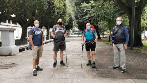 El Camino Inglés recupera el pulso, sobre todo este fin de semana. El viernes a primera hora partían de Ferrol diversos grupos de peregrinos, uno de ellos era el formado por los médicos Alfonso Elías y José Antonio Bello y sus dos amigos Jon Santisteban y Daniel Crispin. No les une lo profesional, pero sí que los cuatro son vascos, amigos y unos expertos en peregrinaciones. Han hecho todos los caminos y reconocen que el Inglés es uno de los que más les gusta, como también el Primitivo, el Sanabrés o el de Invierno. Apuntan que siempre han tratado de huir del Camino Francés, que está más masificado. En esta ocasión no irán a los albergues del camino y han optado por hacer las paradas en hoteles y hostales. Apuntan que les da más tranquilidad en la situación actual, ya que Alfonso y Jose Antonio han vivido la pandemia en primera línea de fuego. Daniel, que veranea en Covas, está muy ligado a Ferrol porque de aquí es su mujer, aunque residen durante todo el año en Barcelona. Caminarán hasta Fisterra después de completar el camino hasta Santiago. Buscan pasar casi diez días caminando y disfrutando de la gastronomía y del paisaje y bromean diciendo que en el País Vasco hay tres provincias gallegas, Baracaldo, Ermua y Trintxerpe, por ello, aquí, se sienten como en casa.