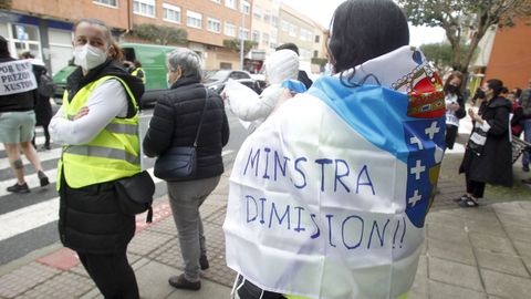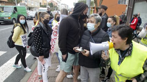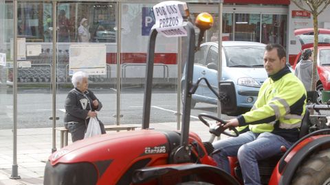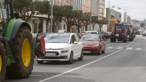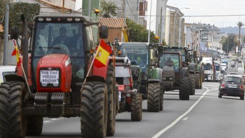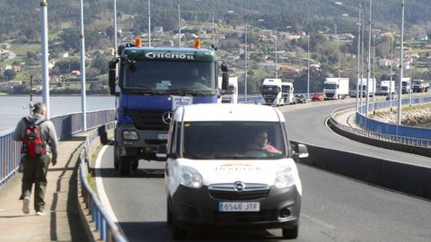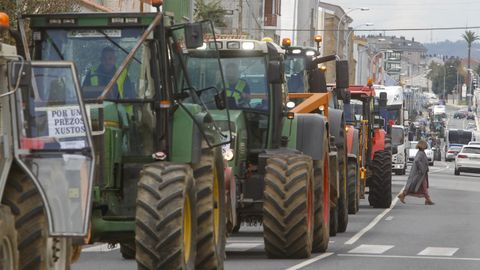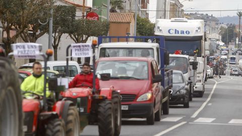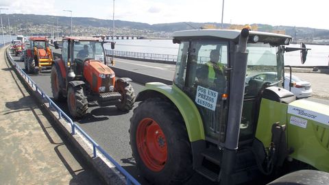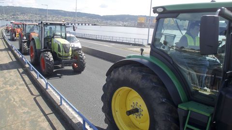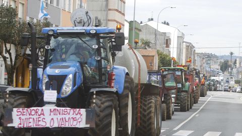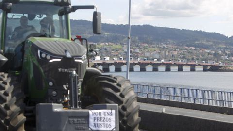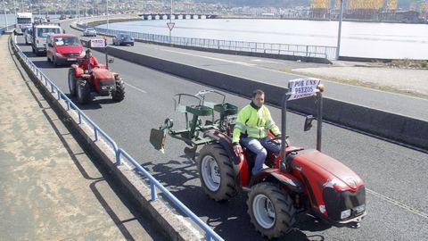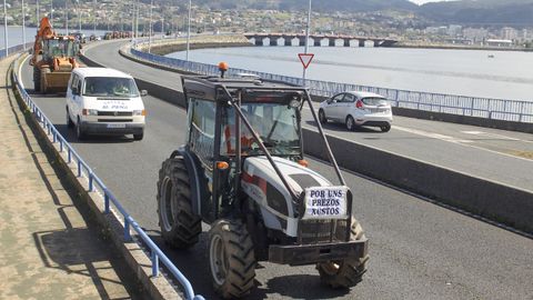Abriendo la marcha reivindicativa realizaron el recorrido bordeando la ría de Ferrol un centenar de personas a pie, que previamente protagonizaron cortes de tráfico intermitentes en Freixeiro, obligando a los coches a detenerse mientras cruzaban la calzada de un lado para otro en un paso de peatones. Así estuvieron durante cerca de media hora, mientras esperaban la llegada de los tractores, camiones, furgonetas y vehículos particulares que partieron de Río do Pozo en torno a las diez y media de la mañana. Los movilizados a pie portaban pancartas y corearon consignas tales como «Somos os de abaixo que imos a polos de arriba» y «ministra ¿ves o vamos?».