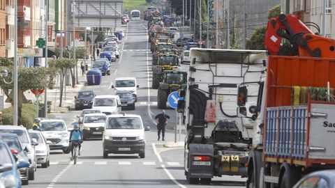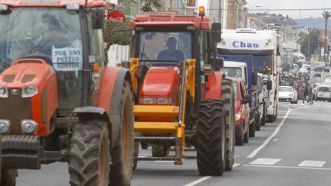 A sus gritos se sumaron después los bocinazos de los tractores agrícolas y del sector forestal, los camiones y un gran número de furgonetas y vehículos particulares, que formaron una larga caravana que, según fuentes policiales, medía alrededor de diez kilómetros.