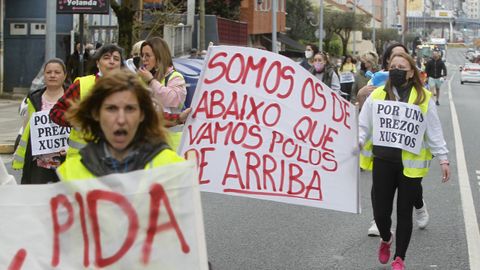 Desde Freixeiro, la marcha atravesó Narón por la carretera de Castilla hasta el puente de Xuvia, para después cruzar Neda y Fene, continuando por el puente de As Pías, polígono de A Gándara, O Couto, Megasa y regreso de nuevo por la carretera de Castilla en dirección a la explanada del Río do Pozo, donde los huelguistas continúan concentrados.
