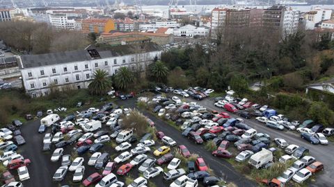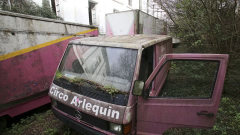 El antiguo acuartelamiento de Ferrol se ha convertido en un gran basurero de vehículos abandonados, motos achatarradas, material de obra, farolas, embarcaciones y hasta los siete camiones que dieron vida en su día al circo Arlequín. Con las jaulas de los animales, la caravana de los artistas y los micrófonos de los que seguro salió aquella frase de: ¿Qué tal están ustedes?.