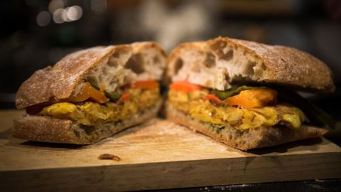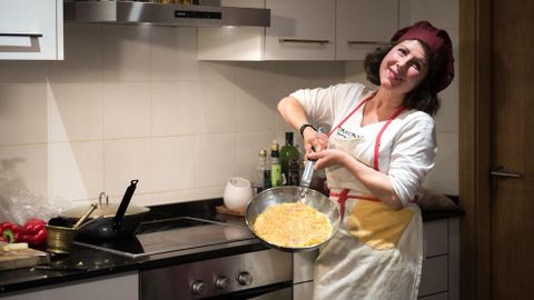 Carmen se presenta como una gran amante de la cocina. «En mi casa siempre hubo una auténtica competencia por ver quién hacía mejor la tortilla, entre mi abuela, mi madre y yo. La hacemos como todo el mundo, pero con un pequeño secreto que no lo voy a contar. Después comprobé que con el pisto y el pesto hace un maridaje perfecto. Así que me inventé este bocadillo al que, tanto mi hijo Martín que está conmigo en la taberna, como yo, ya llamamos el de Madrid Fusión. El pisto lo hago con cebolla, pimiento, calabacín y tomate, añadiendo una hoja de albahaca. El pesto con piñones,albahaca, ajo y queso del Cebreiro. Toda una explosión de sabores», confiesa.