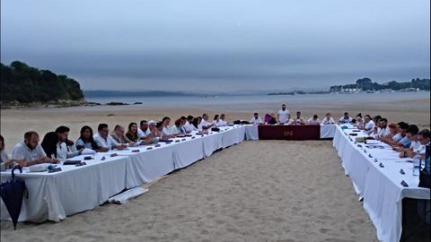 Los vecinos de Ares más madrugadores pudieron disfrutar de esta estampa tan poco usual en su arenal durante la hora y media que duró la asamblea. Algunos paseantes creían incluso que lo que ocurría en la playa era la celebración de una boda.