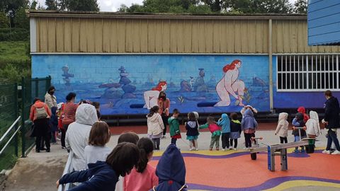 El colegio de Cabanas exhibe el «mural das emocións», dentro del proyecto de patios inclusivos
