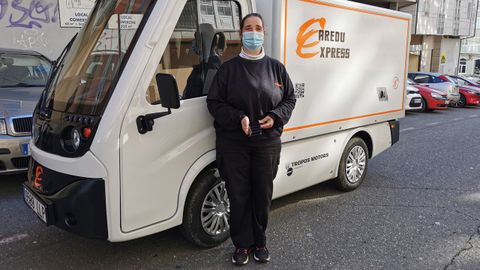 Mientras una parte del comercio agoniza a causa de la pandemia, el negocio electrónico a través de ese gran escaparate de la red gana mercado. Se aprecia a través del movimiento de los repartidores de las empresas de mensajería. Hace ya unos meses os contamos que hay tantos envíos de compras que algunas empresas se ven obligadas a reforzar el servicio, contratando a más personal, pero también adaptando la flota de reparto a la movilidad urbana. Por eso llama la atención la furgoneta que conduce Mónica Márquez López. Ella trabaja para la empresa ferrolana Caredu Express, que para adaptarse al reparto urbano cuenta con una pequeña furgoneta eléctrica que está en servicio por el centro de Ferrol distribuyendo envíos dirigidos a particulares. Mónica está en el servicio de reparto desde agosto, y asegura estar encantada con el vehículo eléctrico, cabe por cualquier lugar, no hace ruido, no contamina y su caja de carga es tan capaz como la furgoneta grande que antes conducía pero que ya no echa de menos, porque esta, dice, es mucho más versátil y fácil de conducir por las calles del centro.