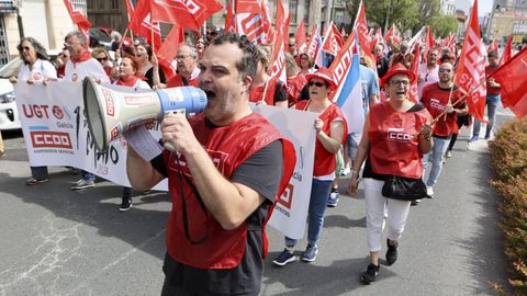 01 may 2024 . Actualizado a las 05:00 h.«Polo pleno emprego, a redución da xornada e mellores salarios». Es el lema elegido este año por los sindicatos UGT y CC.OO. que celebrarán de forma conjunta el Primero de Mayo, Día Internacional del Trabajo. Ambas centrales organizarán hoy a mediodía una manifestación que partirá de la plaza de O Inferniño para desembocar en la plaza de Armas, donde se leerá un manifiesto reivindicativo.