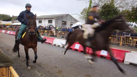 Los seguidores de las carreras se mezclaban con los fieles de las ferias mensuales, como Teresa, que no se pierde ninguna «porque tes verdura, froita...». Y ropa de temporada, como la que vende la fenesa Mabel Díaz, que tampoco falla ni el 11 ni el 23. Ayer también se podía comprar bacalao de las islas Feroe; jamón de Segovia, «a 30 euros la pieza, bajo en sal, ¡probadlo sin compromiso!», animaba el vendedor; o cinco toallas por diez euros. Pero nada tira tanto como los caballos, ni siquiera los churros de María, de Berdillo (Carballo), «que tan ben entran con este frío».