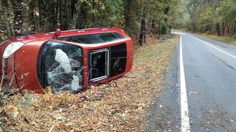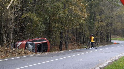 15 dic 2018 . Actualizado a las 17:11 h.Un accidente automovilístico se produjo esta madrugada en Monfero sin que hubiese que lamentar heridos. El vehículo volcó en el punto kilométrico 16, en las cercanías del Concello. Durante toda la mañana, el coche permaneció en la carretera, señalizado con los preceptivos triángulos, aunque a estas horas su propietario ya inició los trámites para su retirada del lugar.