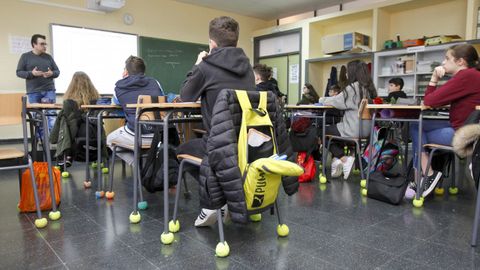 Alumnado del IES de Mugardos tunea sus sillas y pupitres para acabar con el molesto ruido