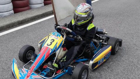 Álex Cagiao lleva cuatro años subido a un kart y, además de los dos títulos gallegos, también conquistó una copa de promoción en el 2015. Además, este año acabó tercero en la general del Campeonato Social de Invierno (cuatro pruebas), en el que compiten 20 pilotos en Asturias y Castilla y León. «Está muy contento por haber ganado», valora su padre, Iván, que lo acompaña siempre.