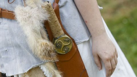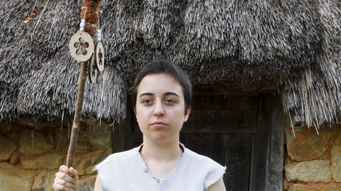 Y sobre la vestimenta femenina, la actriz que posa para la foto opta por un chaleco y una falda «muy austeros», que adorna con pieles y una vara, también con detalles. Además, porta una espada, dado que era habitual que las mujeres fuesen armadas, al tener mucho poder en el poblado. Con estas claves sobre la mesa, está claro que cualquier puede animarse a ser castrexo por un día en el Oenach.