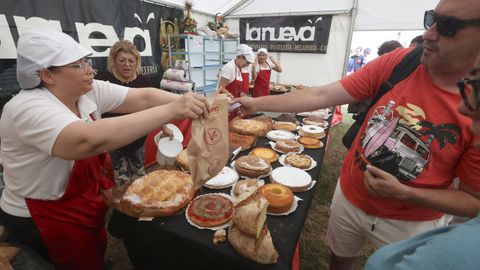 Montse Casal, de la panadería Santa Rita, otra de las participantes, insistía en que a la Festa do Pan «la gente va a comprar». Nada de distraerse echando un vistazo a esa exhibición de sabores y olores de las tahonas. Al pan tradicional, de masa madre, sumaron el de maíz —«ahora escasea la harina porque la gente de aquí deja de cultivar y la de fuera no hace buen pan, tuvimos que ir a buscarla a Ordes»—; y las empanadas, de bonito, bacalao, zamburiñas, pollo... Y la bolla de huevo —«típica de Neda»—, la bica o la tarta de queso.