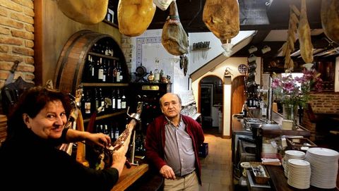 Sin recurrir a la teoría del Big Bang, sino a la casuística de los negocios, un 20 de mayo de 1986 nacía al lado de la Porta do Sol la que según sus propietarios, fue la primera jamonería que hubo en Vigo. Jamón, queso y vino hubo siempre, pero no el concepto de restauración que haría de este trío de ases de la despensa las estrellas de la carta. «Cuando nosotros abrimos no existía nada parecido. Y mucha gente no había probado antes el jamón ibérico», cuenta María del Carmen Pérez, que es la que ha estado al frente del establecimiento desde el principio. Su marido, Carlos Vázquez, se ocupa ahora de echar una mano pero cuando empezaron, él trabajaba en una empresa de automóviles y después tuvo un taxi.