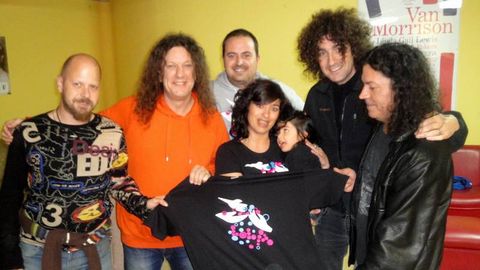 1 Un doble éxito consiguieron los componentes de Extremoduro en su visita a nuestra ciudad. Además de llenar de público el Coliseo (10.500 personas), algo que nadie lograba desde hace seis años (el último fue Fito) mostraron su lado más solidario. Los de Extremoduro tienen un lado blando. No dudaron en apoyar la campaña para recaudar fondos destinados a hacer frente a los costosos tratamientos que precisa la pequeña Lola, la niña de Cambre que padece una parálisis cerebral. Sus padres, Paula Faro y Fernando Lista posaron con los integrantes del grupo y con la propia Lola y les mostraron la camiseta que tienen a la venta. «Por el momento solo se puede conseguir a través de la web lacamisetadelola.com o en la tienda Solhouse del Temple, pero pronto añadiremos otros puntos de venta», comentan los amigos que ayudan a Lola y a sus padres a llevar a cabo este tipo de actividades para dar a conocer su caso y su situación.